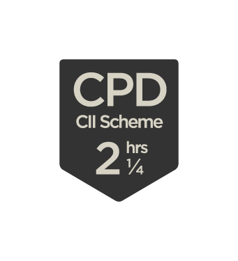 This demonstrates the quality of an event and that it meets CII member CPD scheme requirements. 2 1/4 hours CPD can be claimed for this event if relevant to your learning and development needs.